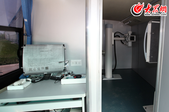 中通客車生產的“方舟健康醫療衛士”內部有牙科床、胸透室、聽力檢測室、血液檢測和尿液