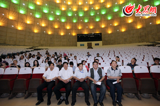 ![]() 相關領導及采訪團記者在明珠劇場內參觀、采訪。(盛堃 攝影)