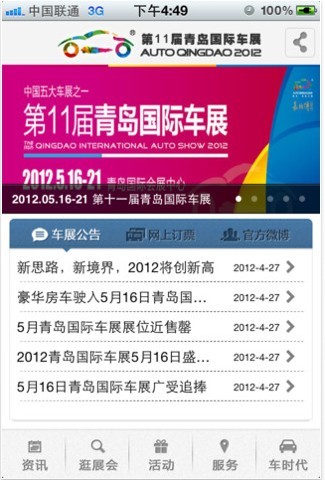 在移動(dòng)互聯(lián)網(wǎng)時(shí)代闊步走入人們的視野之時(shí),本屆車展也迎合此基調(diào)與時(shí)俱進(jìn),攜手青島新聞網(wǎng),以全新的展會(huì)服務(wù)理念,為本次展會(huì)度身定制了一套全方位、全時(shí)覆蓋的手機(jī)客戶端系統(tǒng),真正完成了歷屆車展想要達(dá)到的信息實(shí)時(shí)推送及“零死角”活動(dòng)公告發(fā)布的技術(shù)突破,更有網(wǎng)上訂票,車展官方微博互動(dòng)等熱點(diǎn)功能,讓本次活動(dòng)更精彩,服務(wù)更貼心。