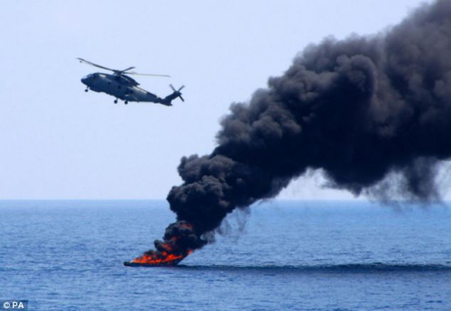 “隼”式直升機(jī)對(duì)海盜船進(jìn)行掃射