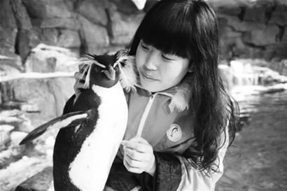 很喜歡親近人,但后來發現對我特別親,而且如果有其他的小企鵝靠近我,它就會醋意大發,用翅膀拍打、驅趕其他企鵝。”飼養員夢夢告訴記者。據了解,每當飼養員王夢夢進入到籠舍時,蛋蛋便會慢慢靠近,并且抬起前腳和雙鰭,向她要“抱抱”。
