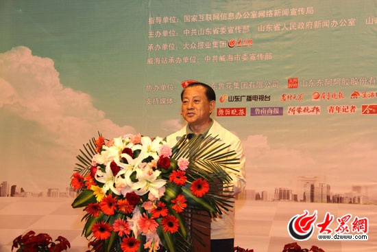 威海市委宣傳部副部長、文聯主席錢啟民主持新聞發布會(馬鑫攝)