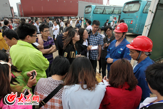 青島北海船舶重工有限責任公司相關負責人接受采訪團記者采訪。(盛堃攝影)