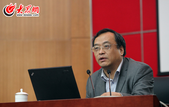 西海岸經濟區規劃部負責人王波向采訪團介紹西海岸經濟區的相關情況。(盛堃 攝影)