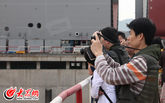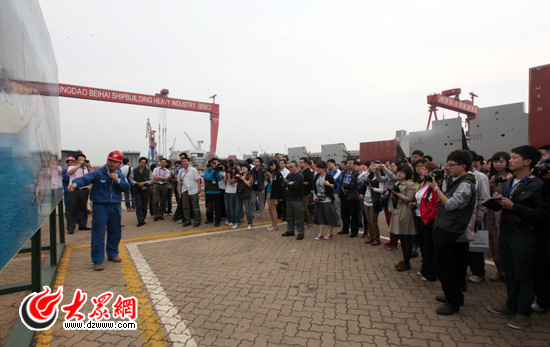 今天上午,科學發展新山東——“魯花杯”第八屆中國網絡媒體山東行采訪團來到青島北海船舶重工有限責任公司。(盛堃攝影)