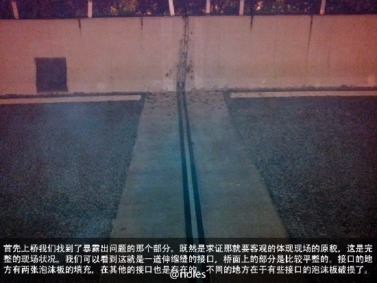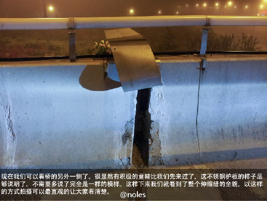 ??? 事情曝出后,也引起熱心網友的高度關注。5月19日,島城網友“noles”帶領“伸縮縫小分隊”考察海爾路-遼陽東路立交橋,今天發回圖文并茂的實地考察報道,受到網友關注。