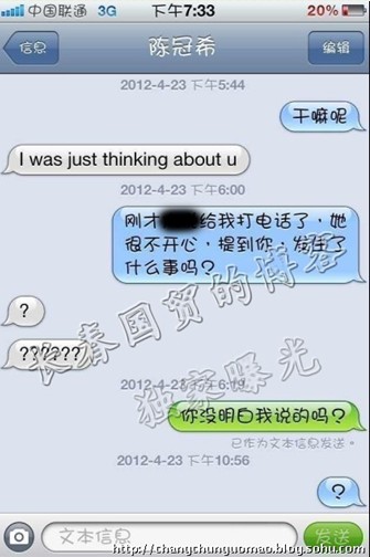 傳陳冠希挑逗內地女藝人 露骨短信悉數曝光(組圖)