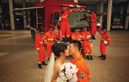新郎是成都消防特勤五中隊(duì)指導(dǎo)員,他與妻子的這組婚紗照走紅網(wǎng)絡(luò)