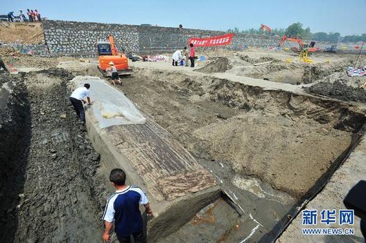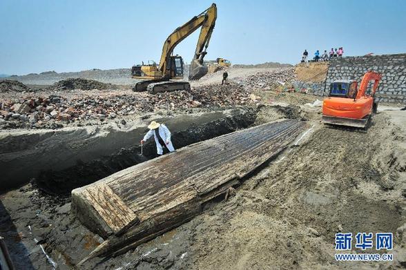 5月28日拍攝的天津市北辰區(qū)張灣村明代沉船遺址考古發(fā)掘現(xiàn)場。近日,天津市文化遺產(chǎn)保護(hù)中心在京杭大運(yùn)河天津段考古發(fā)掘出兩艘明代沉船,出土元、明、清時(shí)期銅、鐵、瓷、陶、骨、木、竹等不同質(zhì)地文物及標(biāo)本600余件。這兩艘沉船均為木質(zhì)結(jié)構(gòu),第一艘沉船損毀嚴(yán)重。第二艘沉船整體保存較好,呈東西向覆扣在河道底部,全長約13米。這兩艘沉船的發(fā)現(xiàn)對(duì)于研究中國古代漕運(yùn)史、水利史、船舶發(fā)展史都有非常重要的價(jià)值,同時(shí),也為京杭大運(yùn)河申遺提供了重要的實(shí)物證據(jù)。