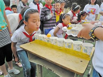昨天,長沙路小學內熱鬧非凡,同學們享受了學校準備的豐盛“六一”游戲大餐。“更上一層樓”“過河拆橋”“小貓釣魚”……學校操場上設置了十多個游戲,同學們可以根據興趣自己選擇,每玩一個就在卡片上蓋章,優勝者還可以獲得小小的獎勵,同學們都“玩瘋”了。校長高先喜告訴記者,學校給孩子們設計的小游戲,既益智又鍛煉身體,讓孩子們在自己的節日里,酣暢淋漓地玩一回。