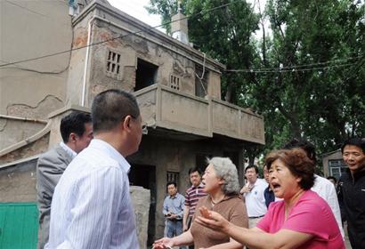 工作人員隨后來到秦大爺所說的樓下鄰居家,66歲的咸女士在這里已住了幾十年。“幾年前就接到危房通知,住在這里擔(dān)驚受怕。”咸女士說,自己希望政府能夠拆遷,讓自己住上安全的房子。在隨后的走訪中,不少居民得知有區(qū)領(lǐng)導(dǎo)來實(shí)地考察,紛紛來反映自己的住房情況。“一到暴雨天氣,居委會(huì)就會(huì)勸我們搬出來避避,可我們心里真不是滋味。”一名女市民說。