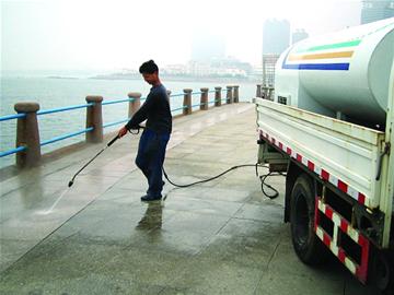 拿著水槍、鏟子、小鐵刷和噴壺,30名保潔人員走上棧橋景區集中清理頑固的黑色“雀斑”,幫助棧橋恢復昔日容顏。隨著旅游旺季的到來,每天有數萬游客前往前海景區游玩。為了解決游客隨口亂吐的口香糖痕跡,棧橋景區管理處動用一輛高壓水車,30名配備“武器”的員工,用上洗衣液和火堿,足足一周時間才將頑固的口香糖鏟除,然而還能看到留下的點點黑斑。