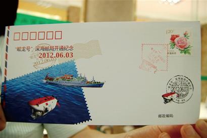 ????中國“蛟龍號”載人深潛器昨日向著7000米的深海極限挑戰,為了紀念這一具有劃時代意義的深海探險活動,全國乃至世界上唯一一家“深海郵局”在我市成立。昨日上午,“蛟龍號深海郵局”地面郵局掛牌儀式在青島市嶗山區郵政局金家嶺郵政支局舉行,虛擬郵局設在位于海底7000米處的“蛟龍號”載人深潛器艙體內。蛟龍號深海郵局的成立,標志著中國郵政海地郵路的正式開通。