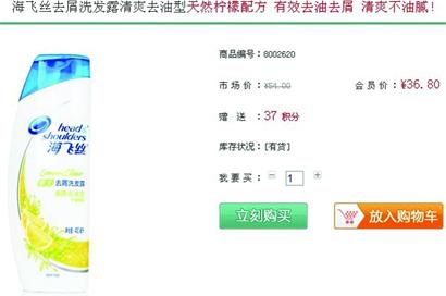 ????記者昨登錄該網站看到,這是一家銷售護膚品、藥品、營養品等商品的網站,很多商品仍然處于降價促銷階段。記者在網站上看到小崔購買的海飛絲洗發露依然在售,網站標寫市場價54元,會員價36.8元,并贈送37個積分。