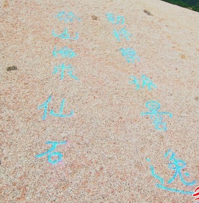 ????“根據《嶗山史志》記載,唐代道士孫曇在嶗山建山房、祭山海、采仙藥,并留下了三處神秘的刻石,在棋盤石附近留有一處石刻,上書‘敕采仙藥孫曇逸祭山海求仙石’。”曲老師表示,此處石刻恰恰符合歷史記載,應該是真跡。