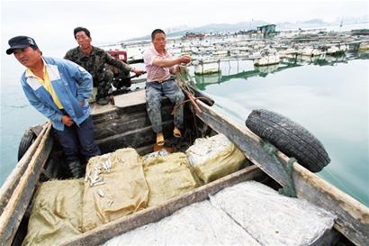 ????昨日下午,記者在開(kāi)發(fā)區(qū)顧家島碼頭看到,一輛拉著冰凍小魚(yú)的小貨車停在碼頭上,不少海鮮養(yǎng)殖戶駕船靠岸等待裝貨。“這些冰凍的小魚(yú)都是用來(lái)喂牙鲆魚(yú)的,它們都很‘挑食’,除了這些小魚(yú),別的什么也不吃。”43歲的養(yǎng)殖戶顧增貴說(shuō),他和來(lái)自福建連江的養(yǎng)殖戶伏廣梅一起養(yǎng)的牙鲆魚(yú)是從福建運(yùn)來(lái)的,嬌貴著呢。“現(xiàn)在福建那邊海水水溫已經(jīng)達(dá)到24℃了,‘高溫’讓牙鲆魚(yú)有些受不住了。”顧增貴說(shuō),青島現(xiàn)在的海水水溫只有18℃,正好適合牙鲆魚(yú)的生長(zhǎng)。“老顧前幾年去福建買魚(yú)苗時(shí),我們認(rèn)識(shí)了,這次從福建過(guò)來(lái),我特地投靠他來(lái)了。”伏廣梅對(duì)記者說(shuō),他一共在顧家島海上基地租了70個(gè)網(wǎng)箱,專門養(yǎng)殖從福建北上“避暑”的牙鲆魚(yú)。