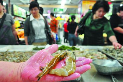 “本來我覺著挺便宜的,沒想到不是正宗的海貨啊! ”10日,來青島游玩的游客孫先生今天去中山路購買東西,順便來到小港的水產品批發市場購買了一些大蝦回去給青島朋友吃。 “當時攤販說10元一個,是剛從海里撈出來的,看起來還挺大,我就買個10個。 ”孫先生表示,他問了兩三家都是這個價就買了,回青島朋友家后才被告知,他所購買的并不是捕撈的蝦,而是養殖蝦。