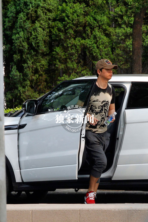 當天,潘粵明駕車載著董潔來到東四環附近一家音像店。無奈車子只能停在馬路對面,二人只好走著穿越馬路。潘粵明習慣地拉起董潔的手走過馬路,很是體貼??上б粝竦戤斕鞗]有開門,二人只好選擇離開。對妻子呵護備至的潘粵明緊緊牽著董潔的手,或是將手搭在董潔的肩上,甜蜜勁仿佛一對熱戀中的小情侶。
