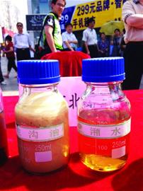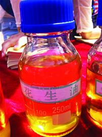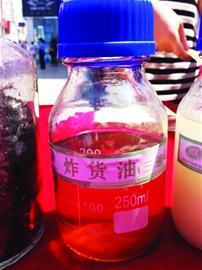 ????“潲水油是地溝油的一種,兩者分辨起來比較簡單。 ”展臺現(xiàn)場的青島福瑞斯生物柴油有限公司有關(guān)負(fù)責(zé)人告訴記者,這些地溝油,是他們從餐飲生產(chǎn)廠家的下水道里撈出來的,為的就是讓市民能有直觀印象。記者試圖了解地溝油的情況,可剛打開瓶罐,一股刺鼻的味道隨即飄來。
