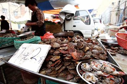 ????隨后,記者在延吉路農貿市場看到,有多個攤位銷售扇貝,有的4元一斤,有的9元兩斤,最低的僅7元兩斤。“價格比去年低了不少,去年是15元兩斤,今年價格跌了一半,但扇貝還是不好賣,每天也就只能賣百斤左右,銷量上比去年也少一半。”攤販王女士說。