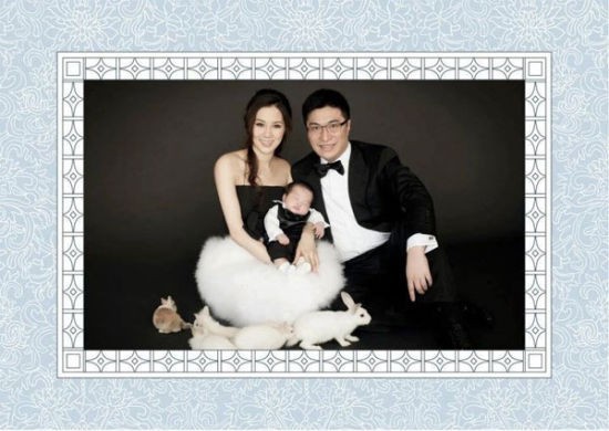 徐子淇和恒基兆業(yè)二公子李家誠的三子小俊熹在去年6月出生。照片中的小俊熹被指為剛出世不久時所拍攝。小俊熹身穿黑白色BB衫,徐子淇穿黑色禮服,裙身下擺是白色毛毛裙,李家誠同傳黑色西裝白恤衫,全家服飾非常搭,而他們身旁還有幾只白色小白兔包圍著,構成一幅浪漫又童話的照片。