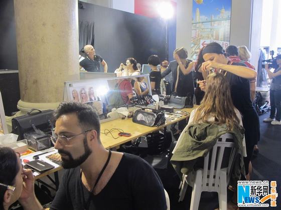 范冰冰巴黎走秀后臺花絮曝光 披浴袍深V露溝化妝(圖)