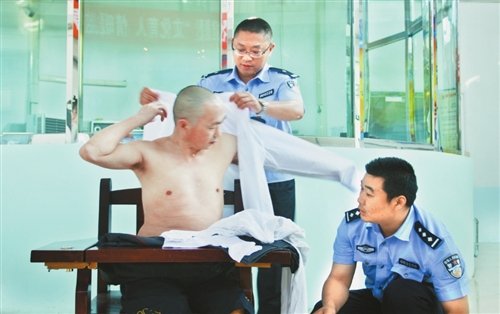 吃完早餐,監(jiān)管民警幫盧福生穿上新衣服