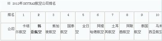 韓亞航空獲得了世界級航空公司及航空服務(wù)品質(zhì)調(diào)研機(jī)關(guān)SKYTRAX社頒發(fā)的“最佳亞洲航空公司獎(BestAirlineinAsia)”。