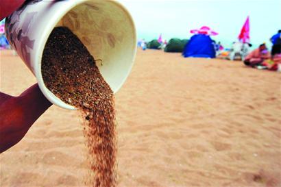 由于在每個(gè)海水浴場(chǎng)里,離海邊的距離不同,沙質(zhì)也不相同。在實(shí)地調(diào)查時(shí),記者選取了每個(gè)沙灘中,所占面積最多的沙質(zhì)來(lái)進(jìn)行比較。同時(shí),根據(jù)沙灘距海水的不同距離,分別在海水邊、沙灘中部和沙灘岸邊的位置取樣,比較準(zhǔn)確地反映了各個(gè)沙灘的實(shí)際情況。 權(quán)威說(shuō)法 游客太多致細(xì)沙流失