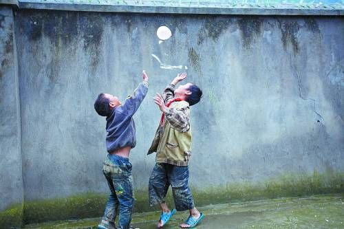中圖:一個汽球讓兩個孩子玩得意興盎然