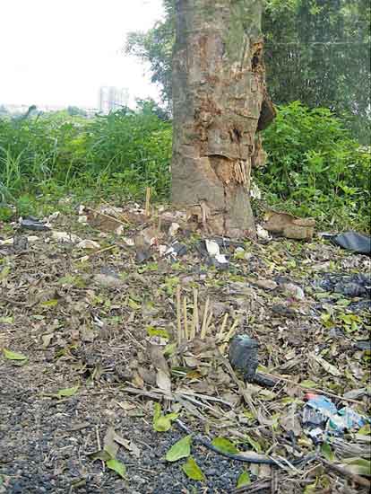 據知情人說,鄭泰聰的車最后撞到了這棵樹上。30日,現場還留有祭拜過的痕跡