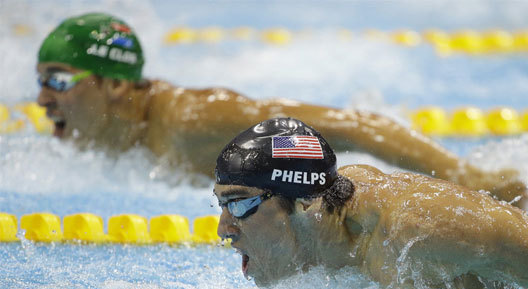 ????比賽開始后,菲爾普斯一馬當先,一直到游到150米時仍然領先第二名的日本選手松田丈志0.10秒??墒牵搅俗詈?0米沖刺,南非選手勒克洛斯后程發(fā)力,在臨近終點前超越菲爾普斯逆轉(zhuǎn)奪冠。