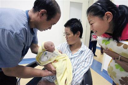 “破爛王”趙祥海的妻子于曰芳在昏迷無意識(shí)狀態(tài)下順產(chǎn)生下一對(duì)雙胞胎男嬰,上演了一段生命奇跡。昨日,家人抱著出院不久的老大趙恩永回到醫(yī)院做新生兒身體檢查并接種疫苗。利用這次機(jī)會(huì),于曰芳第一次見到了兒子,當(dāng)她伸出右手抱恩永時(shí),老趙也流下了幸福的淚水。目前,老二趙恩志仍在青醫(yī)附院接受