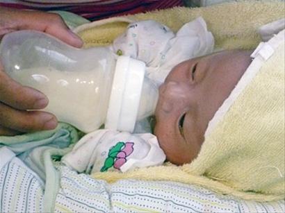 下午1時(shí)30分,恩永到了喂奶的時(shí)間,趙祥海不斷地試著奶瓶中水的溫度,到適宜溫度后再加入奶粉,“先是一勺,再是半勺。”奶粉沖好后,恩永的舅媽坐在椅子上輕輕地抱著他,按照醫(yī)生說的方式喂奶,恩永很滿足地吸吮著,還不時(shí)伸小手向外抓幾下,整個(gè)喂奶過程沒有發(fā)生嗆奶。