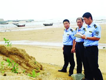 6月5日,執法人員再次來到石塊堆放的現場,準備蹲守追查石塊的去向。上午8時許,執法人員在該海域發現一艘漁船正在離岸不遠處“作業”,當事人劉某正在賣力地搬起石塊朝海里拋撒。執法人員當即查扣了該船,發現船上尚有未拋完的石塊。隨后,執法人員將劉某帶到岸上,對其破壞海灘的行為進行了警告。