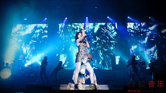 林憶蓮蛇紋短裙熱辣開唱 與緋聞男友配合默契(組圖)