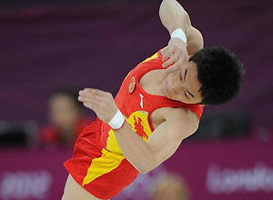 ????中國體操隊在男子自由操項目上只有鄒凱一人