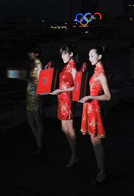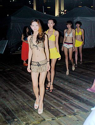 當晚最引人注目的就是月餅西施表演,白色帆布搭建的大棚熄燈后,聚光燈投向了海邊。海中棧橋上突然出現了四位美女,他們手捧月餅,婀娜地向岸邊走來。主持人不斷高喊“嫦娥來了”,現場氣氛嗨翻天。(本網記者)