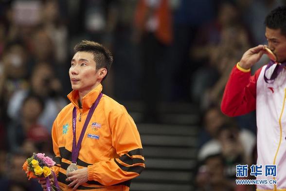 8月5日,李宗偉(左)在頒獎(jiǎng)儀式上。當(dāng)日,在倫敦奧運(yùn)會(huì)羽毛球男單決賽中,馬來(lái)西亞選手李宗偉以1比2不敵中國(guó)選手林丹,獲得亞軍。