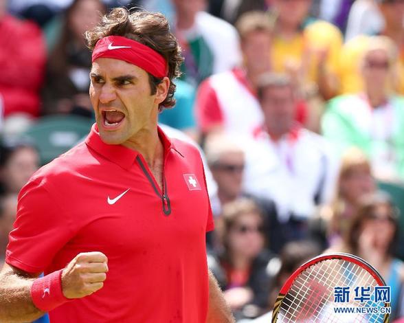 8月3日,瑞士選手費(fèi)德勒在比賽中。當(dāng)日,在2012年倫敦奧運(yùn)會(huì)網(wǎng)球男子單打半決賽中,瑞士選手費(fèi)德勒以2比1戰(zhàn)勝阿根廷選手德?tīng)柌ㄌ亓_,闖入決賽。
