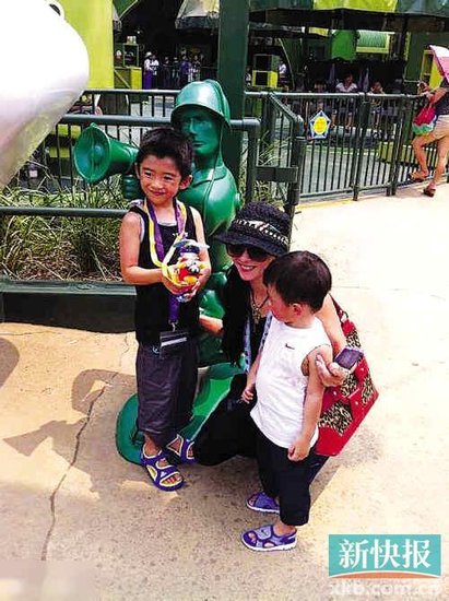 張柏芝攜二子游樂園內慶生 Lucas5歲仍坐嬰兒車(圖)