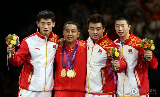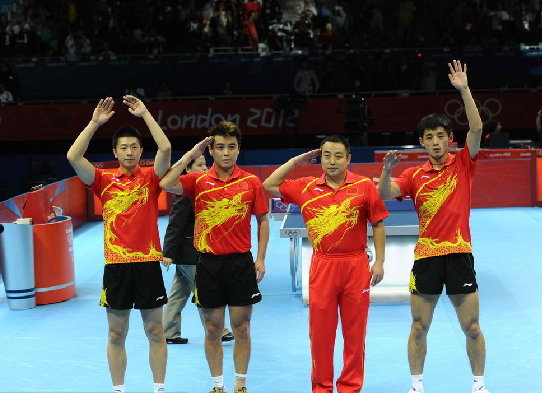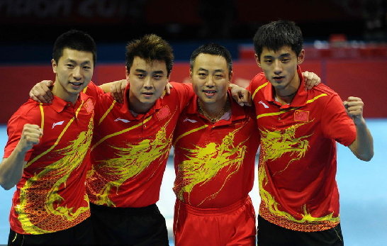 在倫敦奧運會中,中國乒乓球隊繼續(xù)著自己打遍天下無敵手的態(tài)勢,張繼科、王皓、李曉霞和丁寧 已有包攬男女單打金銀牌,男女團體金牌也被中國代表團收入囊中。自1988年漢城奧運會乒乓球成為奧運會正式比賽項目以來,中國隊奪得了全部28枚金牌中的24枚,乒壇霸主地位無人能撼。為中國男乒加油!