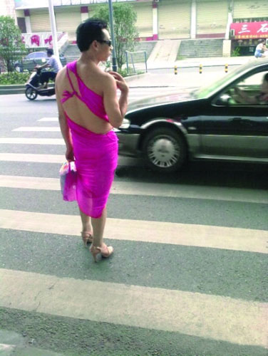 近日,一張武漢“妖嬈哥”的照片在網(wǎng)絡(luò)上廣泛流傳,照片里一個(gè)大男人穿著暴露的玫紅色“連衣裙”,腳踩高跟鞋,戴黑色墨鏡(如左圖),舉止“嫵媚”,被網(wǎng)友稱為“奇葩”。