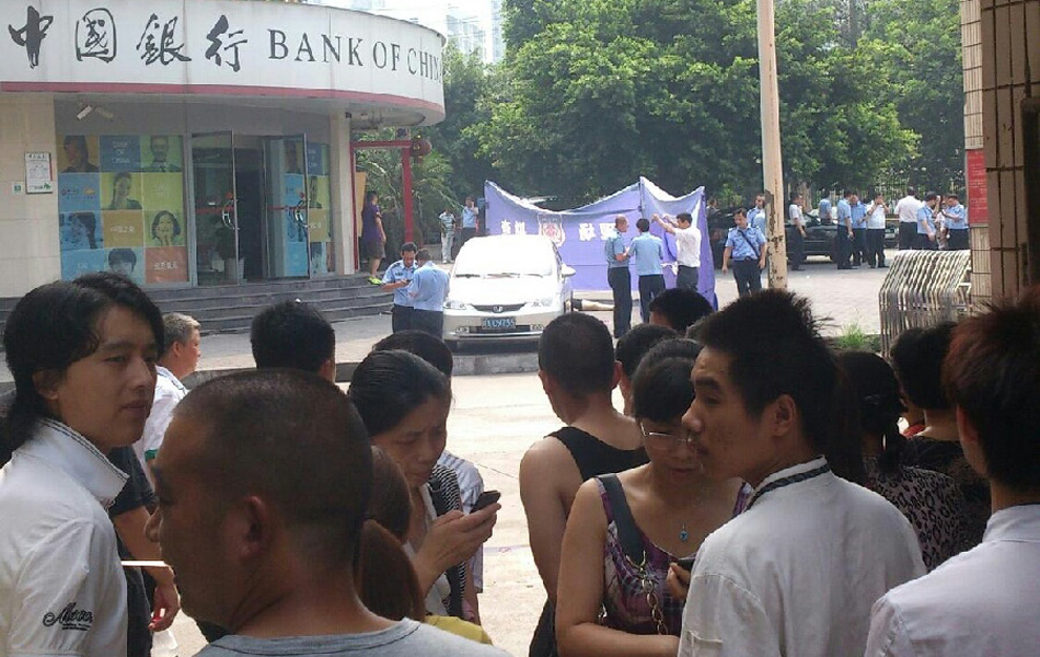 重慶鳳鳴山中國銀行今早發生槍擊搶劫案,數人被槍擊。有網友在論壇發帖稱:現場聽到三聲槍響;一名銀行保安受傷,另有一男一女中槍躺倒在地。重慶警方目前以封鎖現場。