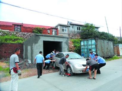 北宅有處嶗山“最牛”的違法車庫,被拆除后又偷著蓋起來。昨天,嶗山城管第3次來拆除這處車庫,發現當事人竟把車停在車庫里阻擾執法。該處違法車庫在北宅峪夼社區,今年3月12日,當事人李某占用公共場地建設車庫,接到舉報后,北宅中隊執法人員立即趕到現場,執法人員說明來意后,當事人李某提供不出任何合法手續,執法人員現場拆除;5月16日,當事人李某無任何合法手續又開始建設車庫,執法人員又一次拆除;7月