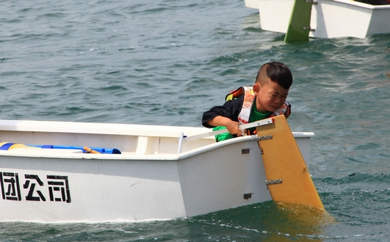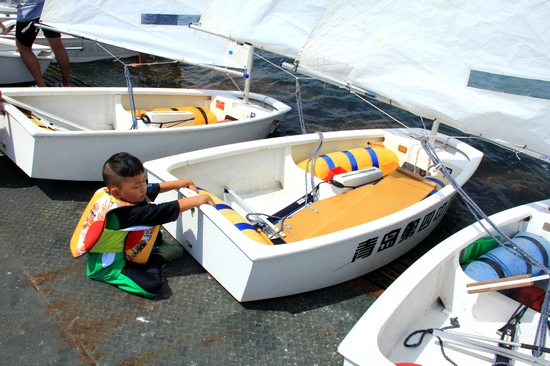 比賽開始了,多多的船在眾多大姐姐選手的包圍中沖出重圍下水,但很快就遇到了麻煩——轉(zhuǎn)向板怎么都裝不上,急得多多快哭了。多多的船隨風(fēng)被吹到了邊緣,撞在一艘停泊的船只上。岸上教練大喊“收帆!轉(zhuǎn)向!”許多觀眾也為他加油鼓勁。只見多多雖然人小,可心理素質(zhì)和“航海”經(jīng)驗(yàn)卻不容小覷,不多一會(huì)兒,多多就成功轉(zhuǎn)向,繞到主航道,雄糾糾氣昂昂的追趕大部隊(duì)了。(青島新聞網(wǎng)記者侯曉華 攝影報(bào)道)
