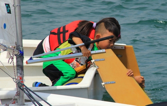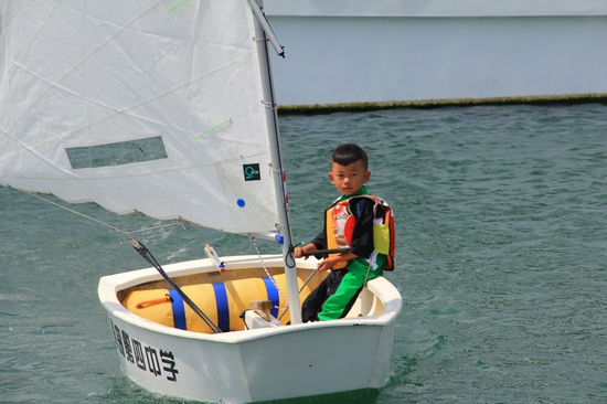 四歲的OP帆船小選手多多來自南京,這是他第一次揚(yáng)帆大海,之前的訓(xùn)練都在玄武湖里進(jìn)行