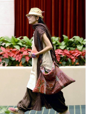54歲楊麗萍素顏顯蒼老 民族裝混搭布鞋(圖)