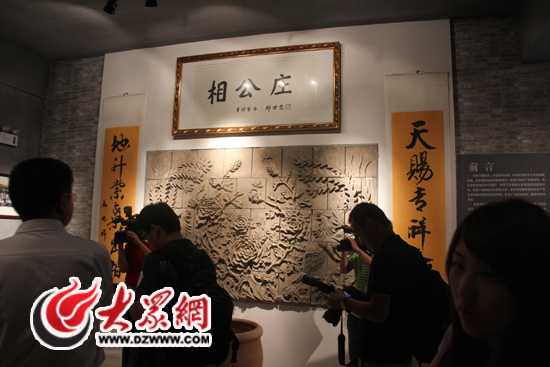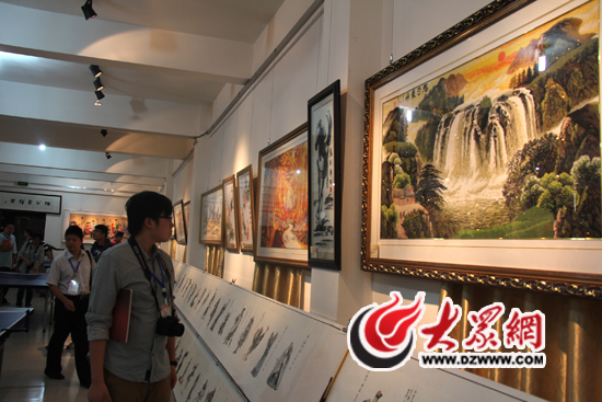 相公莊村村民的十字繡作品在民俗館里展出,吸引了眾多媒體行記者駐足