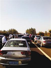昨天早晨4時半,“眼線”曲頌駕車從北京往膠南老家趕。他在天津濱海新區位置遭遇了大堵車,等了近1個小時才繼續前行。從京津高速轉榮烏高速,再轉到濱博高速后,車速一下子就降了下來。 “當時,我感覺就像在北京的高架橋上堵車一樣,慢慢地挪動著,很煩人。 ”曲頌說,他下午2時才到家,路上跑了10個小時,以往最多用7個小時。